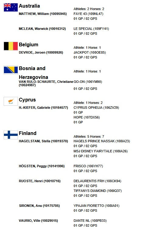 Sur proposition du sélectionneur national, Jean Morel, la Fédération Française d'Équitation a sélectionné les couples qui représenteront la France lors du CDIO 5* de Fontainebleau (77). Organisée par GL events Equestrian Sport dans le cadre du Printemps des sports équestres, la Coupe des nations FEI se tiendra samedi 18 avril. Par ordre alphabétique : Alexandre AYACHE & Ruling Olivia Pauline BASQUIN & Sertorius de Rima Z Bertrand LIEGARD & Ginger Alizée ROUSSEL & Bel Amour